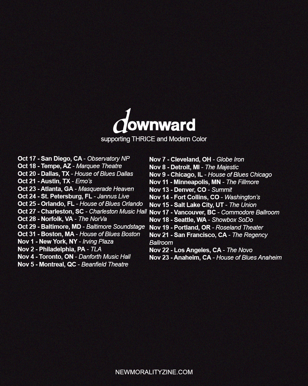 DOWNWARD. A band from Tulsa, Oklahoma with humble beginnings who have set to live beyond musical boundaries. What started as an idea amongst friends quickly became a passion to create music that satisfies all of their overlapping musical interests. The band offers an inspiring sonic take on the realm of alternative and post-hardcore. Downward finds themselves towing the line between what is seemingly light and airy (reminiscent of Radiohead) and at the same time beautifully crushing (akin to modern luminaries Nothing).